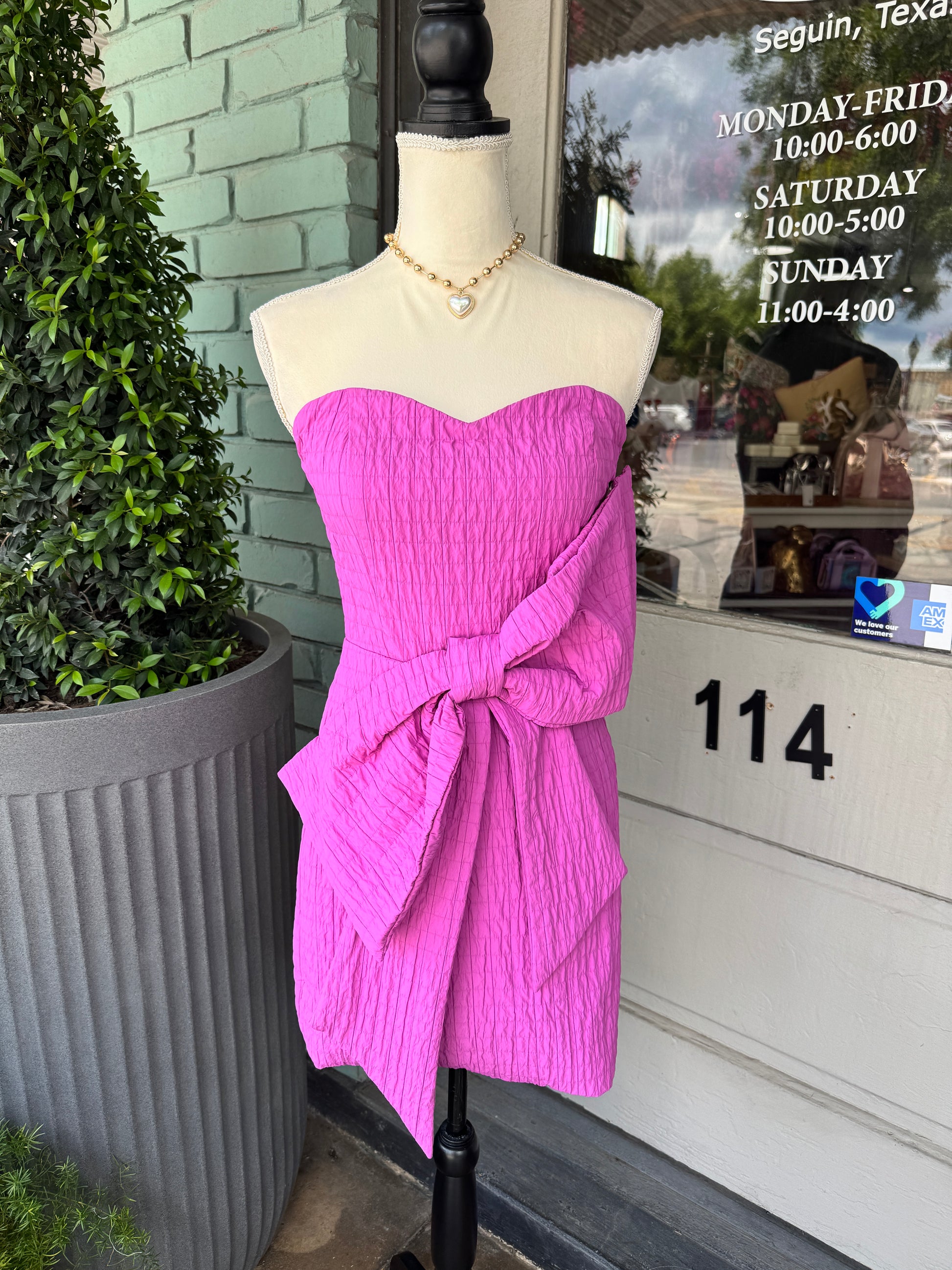 Make a statement with the Adley Bow Mini, a strapless dress featuring a large front bow that adds a touch of bold elegance. Its flattering silhouette and playful design make it perfect for special occasions or nights out, ensuring you stand out with confidence and style!