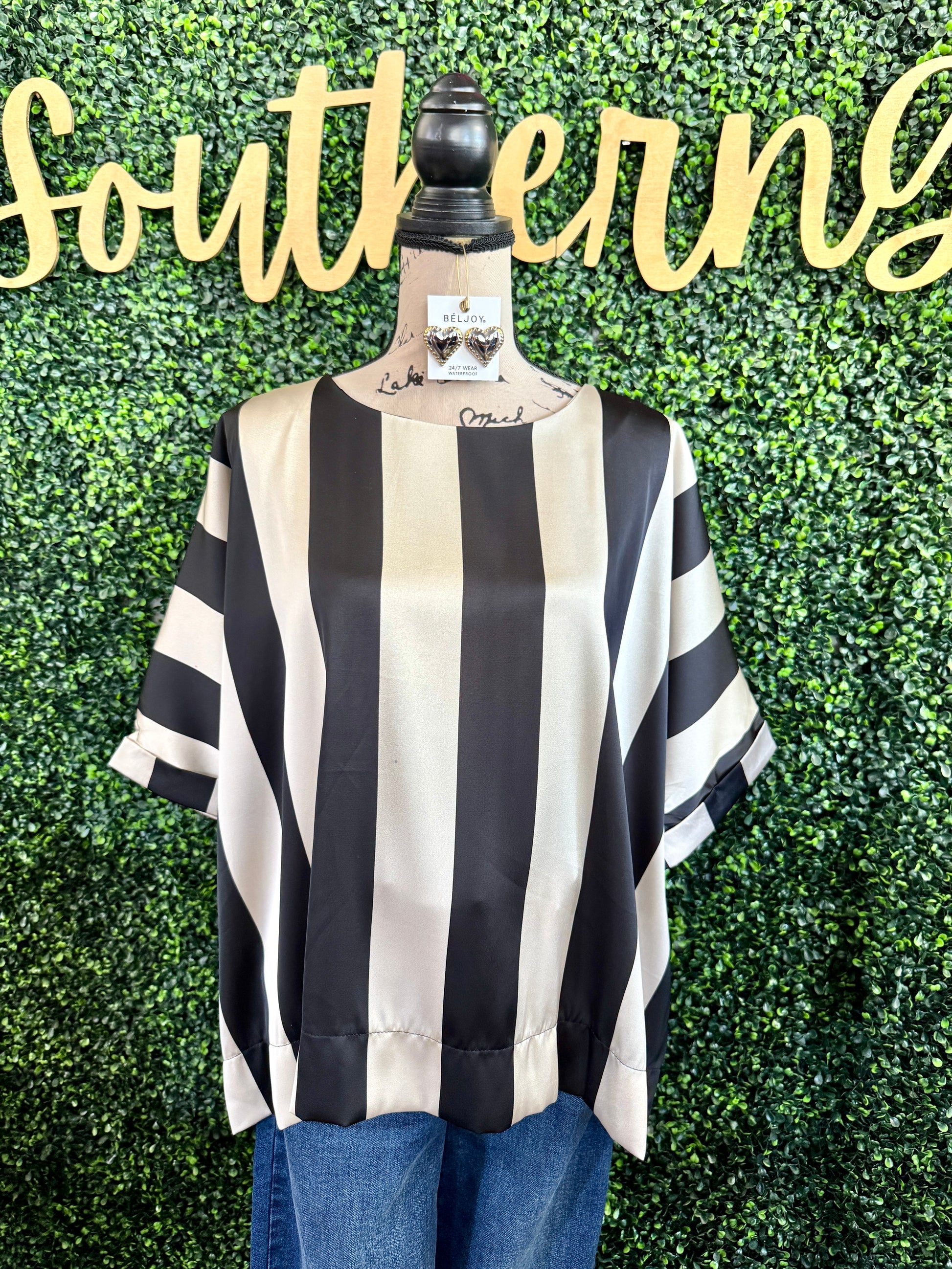 The Aidlynn Black Top features an oversized fit with a classic round neck and chic stripe detail, combining comfort with effortless style. Perfect for layering or wearing on its own, this versatile piece adds a modern edge to any outfit while keeping you relaxed throughout the day. Elevate your wardrobe with this statement top designed for easy, confident wear.