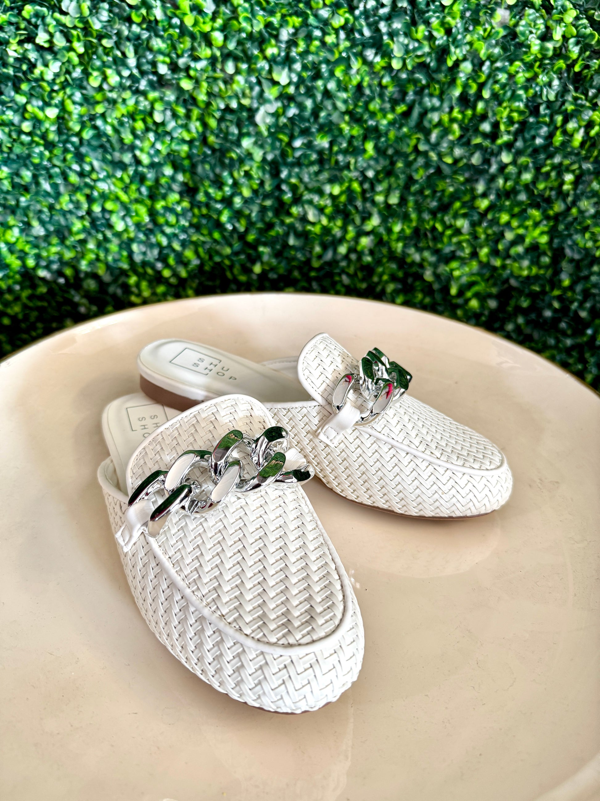 Introducing the Alexis Slide—a fresh take on timeless elegance. This crisp white woven loafer mule from Shu Shop combines effortless style with everyday comfort. The refined woven texture adds visual interest while the slip-on design keeps you moving without missing a beat. Perfect for transitioning from office to weekend, the Alexis Slide pairs seamlessly with everything from tailored trousers to casual denim. Elevate your shoe collection with a versatile essential that works as hard as you do.
