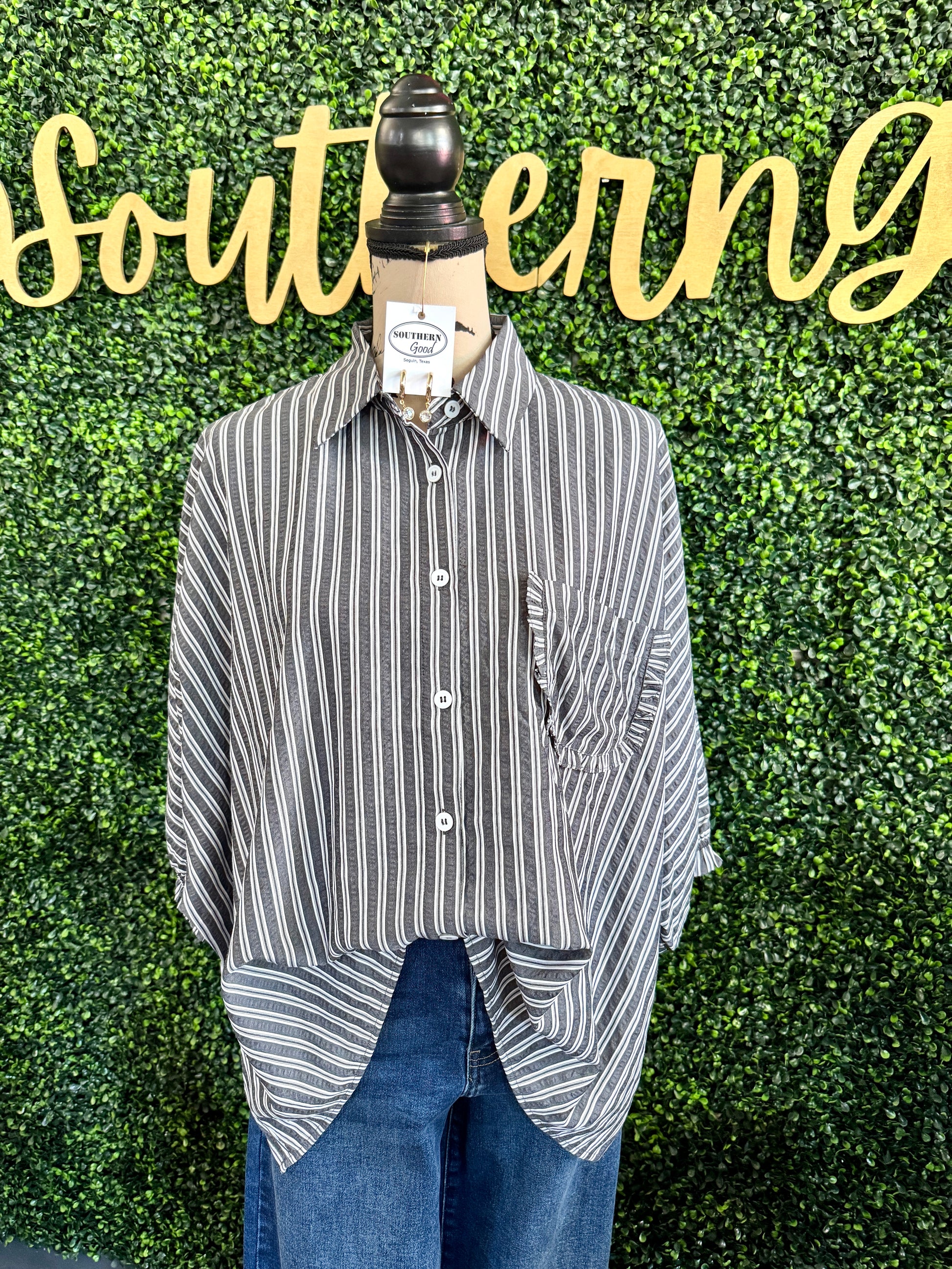 The Bobbie Button Up from Oddi is a must-have oversized striped shirt that effortlessly combines comfort with contemporary style. Its loose fit and breathable fabric make it perfect for all-day wear, while the striped pattern adds a fresh, eye-catching detail. Ideal for layering or a standalone statement piece, this button-up elevates any outfit with ease and sophistication.