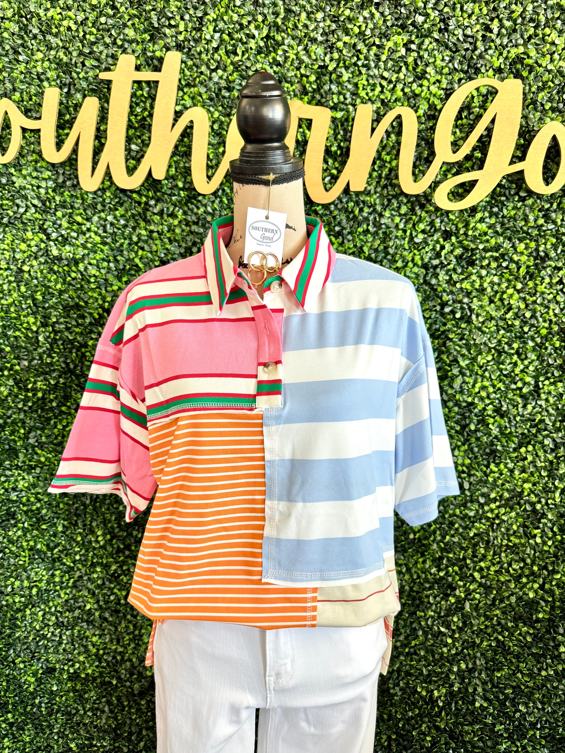Brightin Top features a classic collared neck and blocked pullover design that lets you mix and match with ease. This versatile piece pairs effortlessly with your everyday wardrobe, offering a polished look whether dressed up or down. Perfect for layering or wearing solo, it's a wardrobe essential that works season after season.