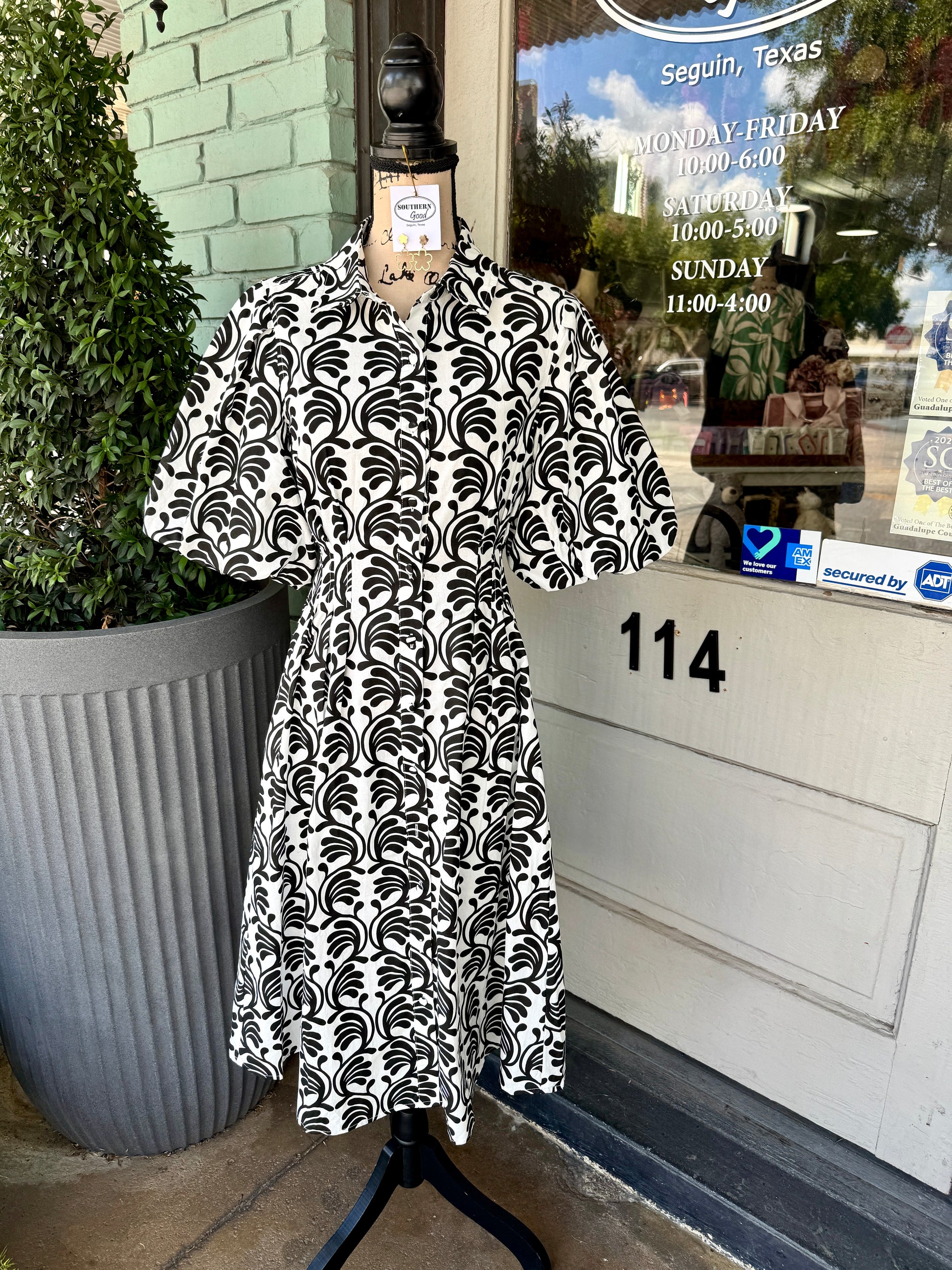 Elevate your wardrobe with the Darwin Black Midi, featuring elegant puff sleeves and a flattering pleated waist that enhances your silhouette. Crafted from 100% breathable cotton, this dress offers both comfort and style for any occasion. Practical side pockets add convenience without compromising its sleek design. Perfect for day-to-night wear, this versatile piece combines classic charm with modern details to keep you looking effortlessly chic.