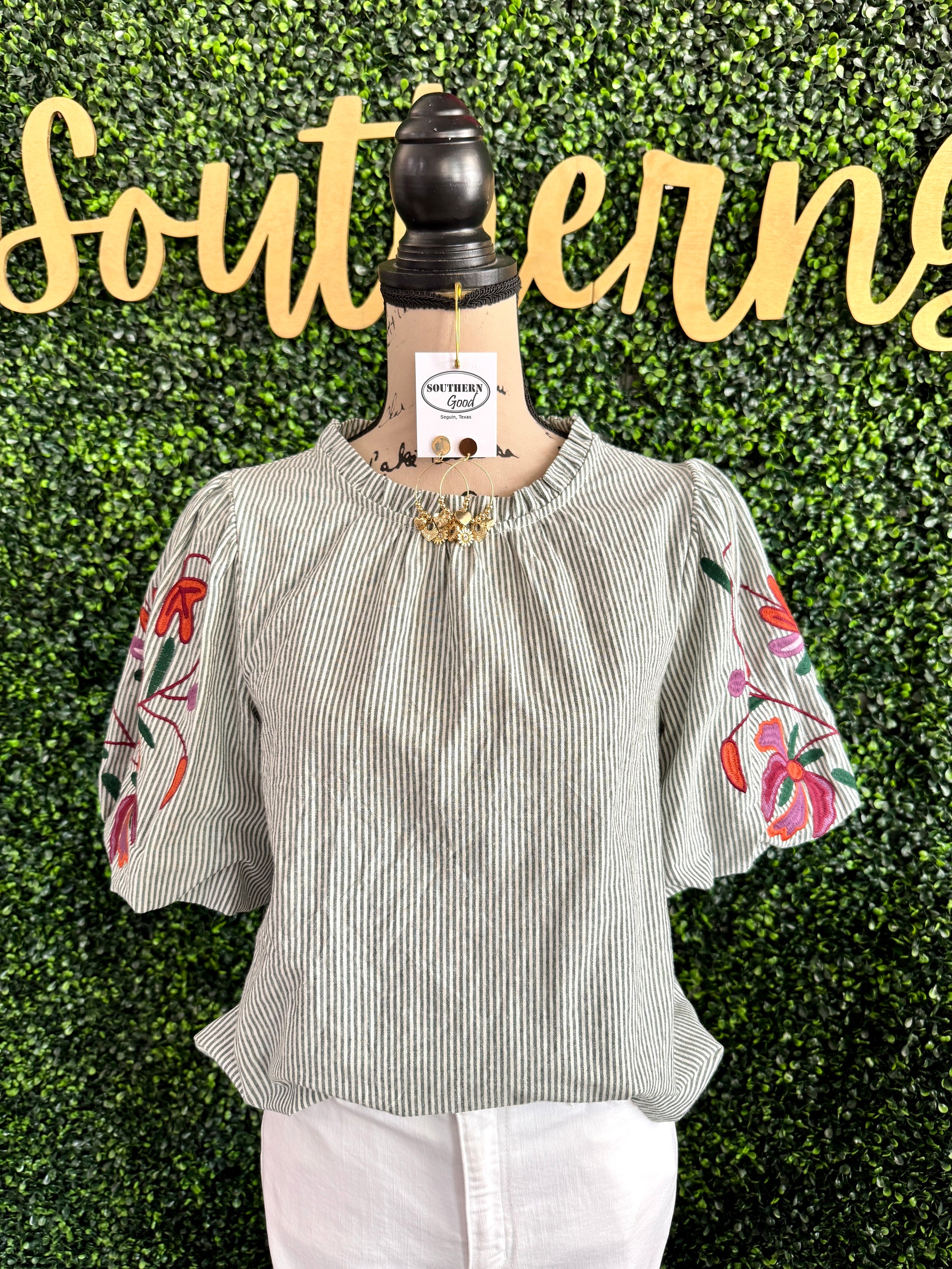 The Eleanor Top by Voy is a stylish choice featuring a fresh green pinstripe design and beautifully embroidered puff sleeves. This top blends timeless patterns with delicate detailing, offering a flattering silhouette that enhances your look. Lightweight and comfortable, it’s perfect for adding a refined touch to your everyday wardrobe or dressing up for special occasions. Make a statement with the Eleanor Top’s unique blend of classic and contemporary style.