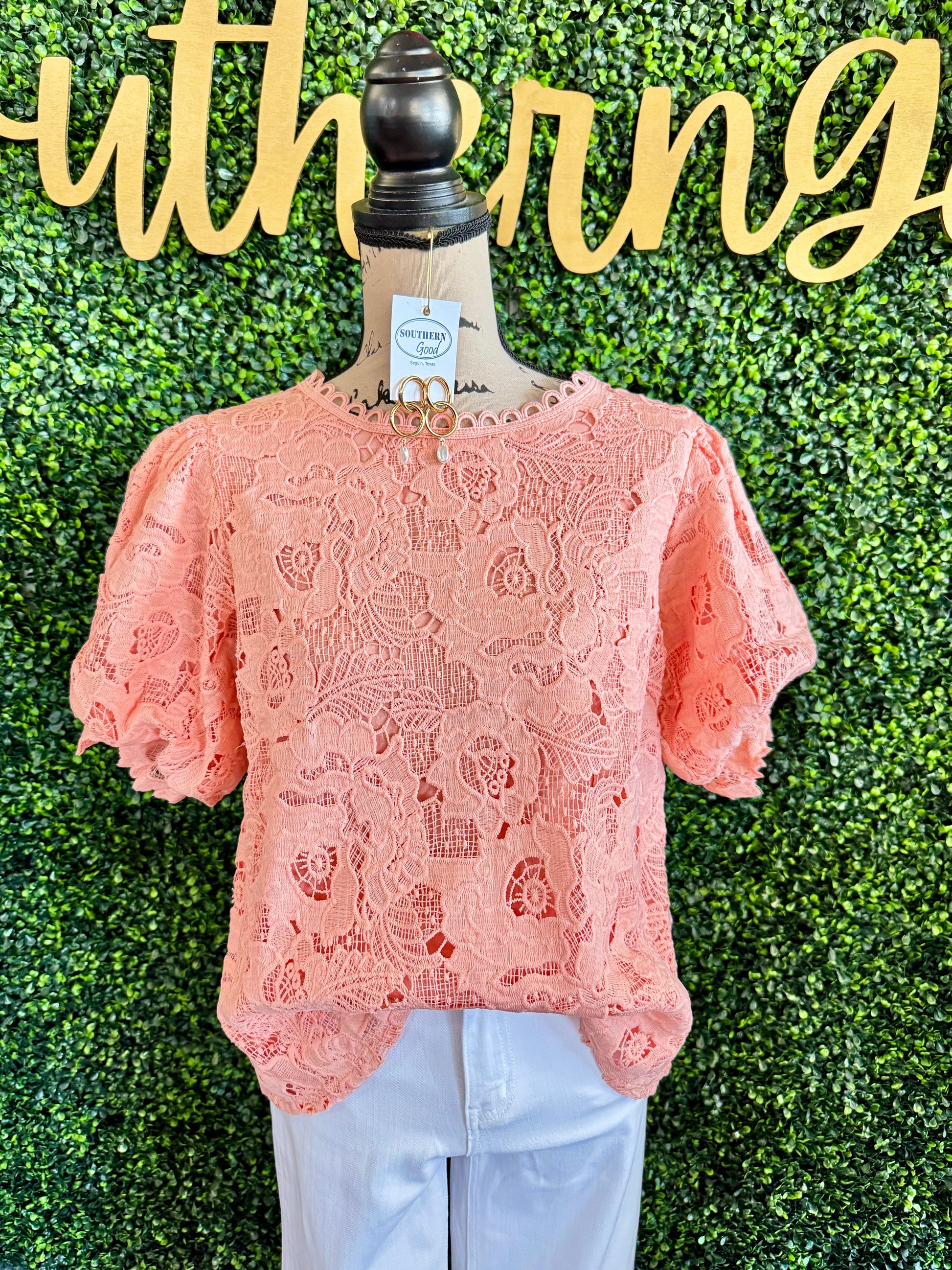 Introducing the Elle Lace Pink Top from Umgee—a charming piece that combines romantic details with modern style. This delicate lace top features statement puff sleeves that add dimension and femininity to any outfit. The soft pink hue pairs effortlessly with your favorite denim or skirts for a versatile look that transitions from casual days to evening occasions. Perfect for layering or wearing solo, this top brings an elegant touch to your wardrobe.