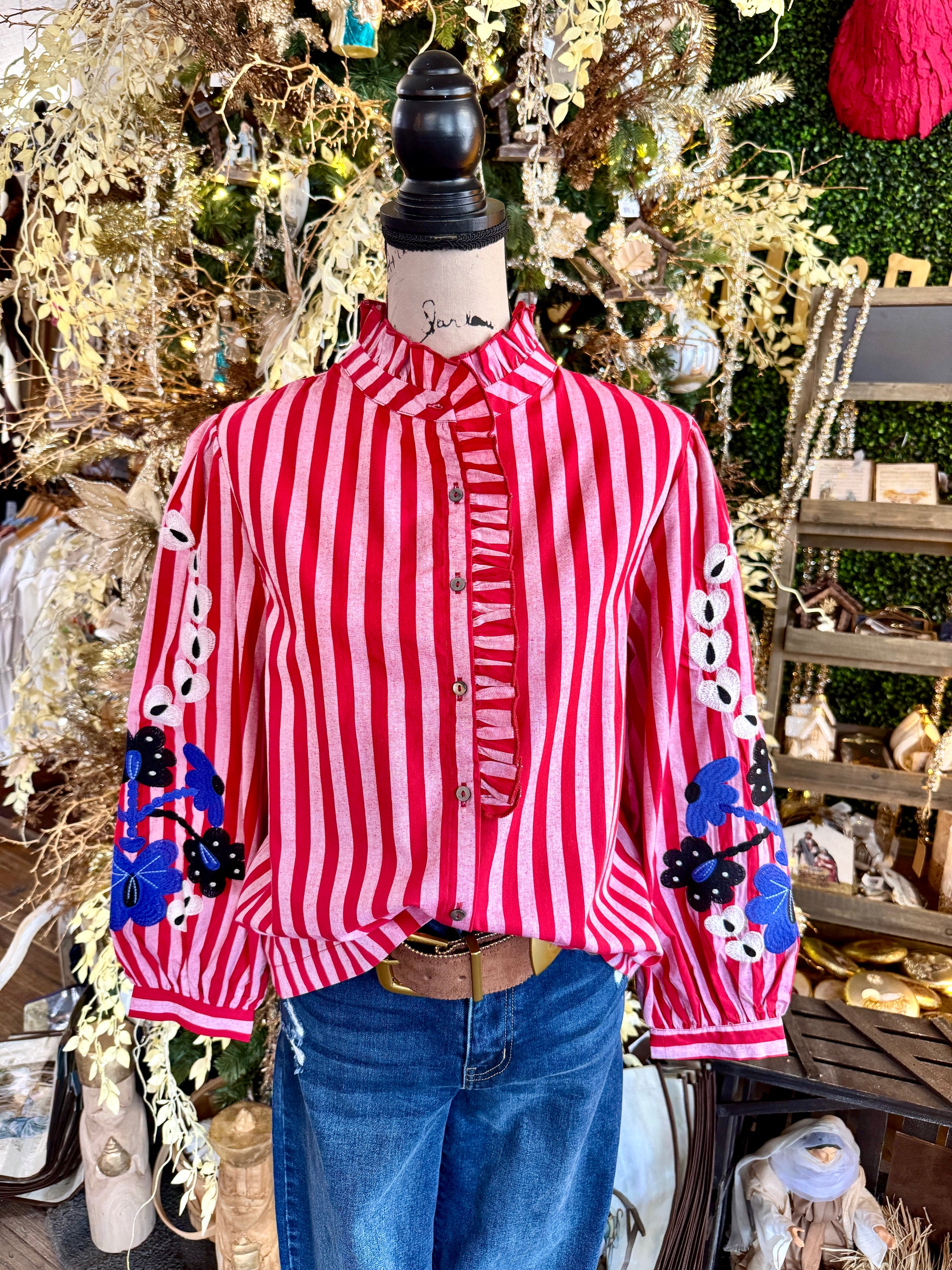 Introducing the Hayden Top from Jodifl—a charming long sleeve piece that effortlessly blends comfort with style. Crafted from 100% cotton, this top features delicate floral embroidery set against classic stripes, creating a sophisticated look that transitions seamlessly from casual outings to weekend gatherings. The breathable fabric ensures all-day comfort, while the thoughtful design details make it a versatile addition to any wardrobe. Perfect for layering or wearing solo, the Hayden Top delivers timeless appeal with modern flair.