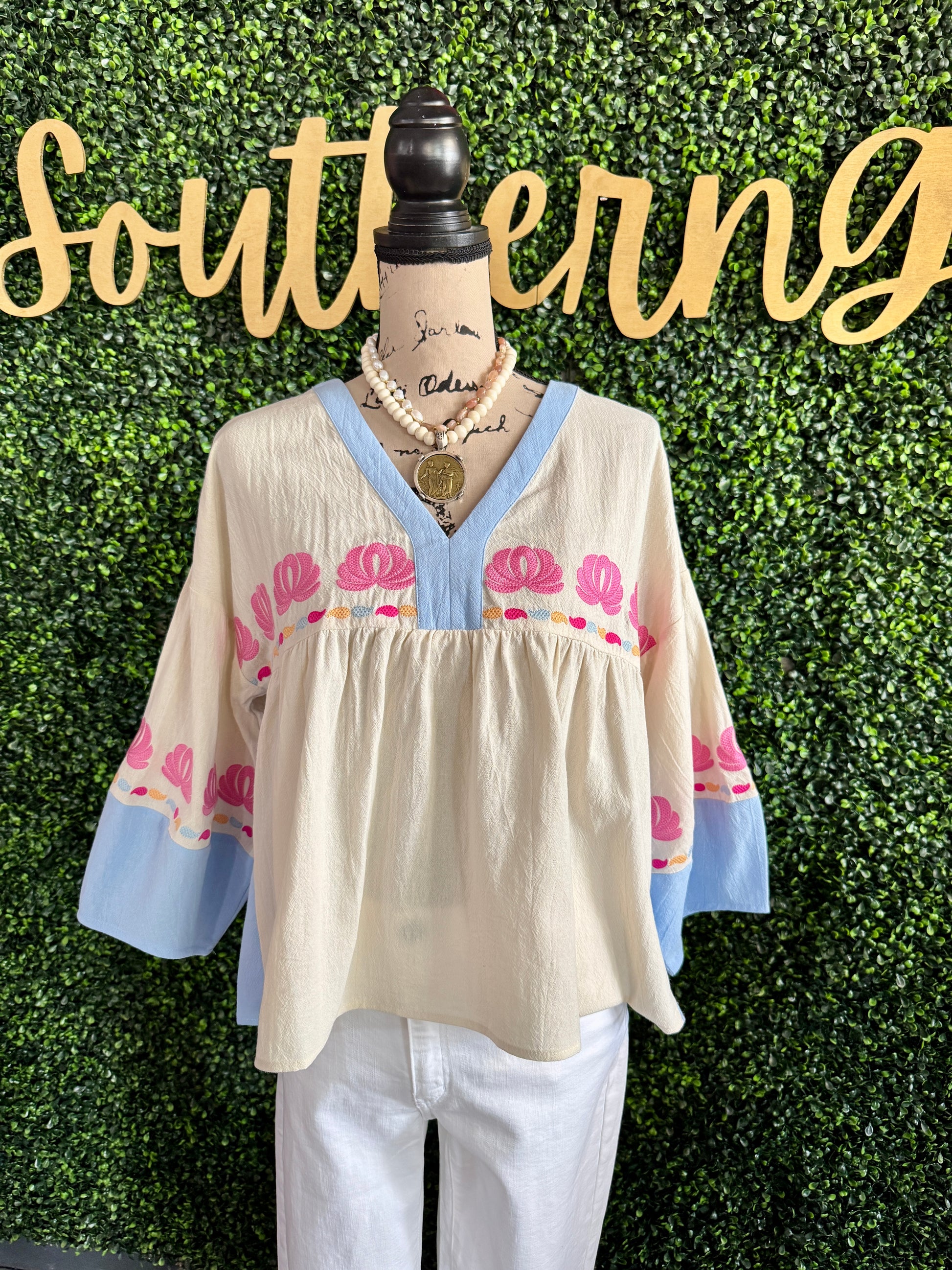 Indulge in the vibrant and stylish Jaylene Top from Oddi! With its color block embroidered design and 100% cotton fabric, this top offers both comfort and chic style. Elevate your wardrobe with this must-have piece and make a statement wherever you go!