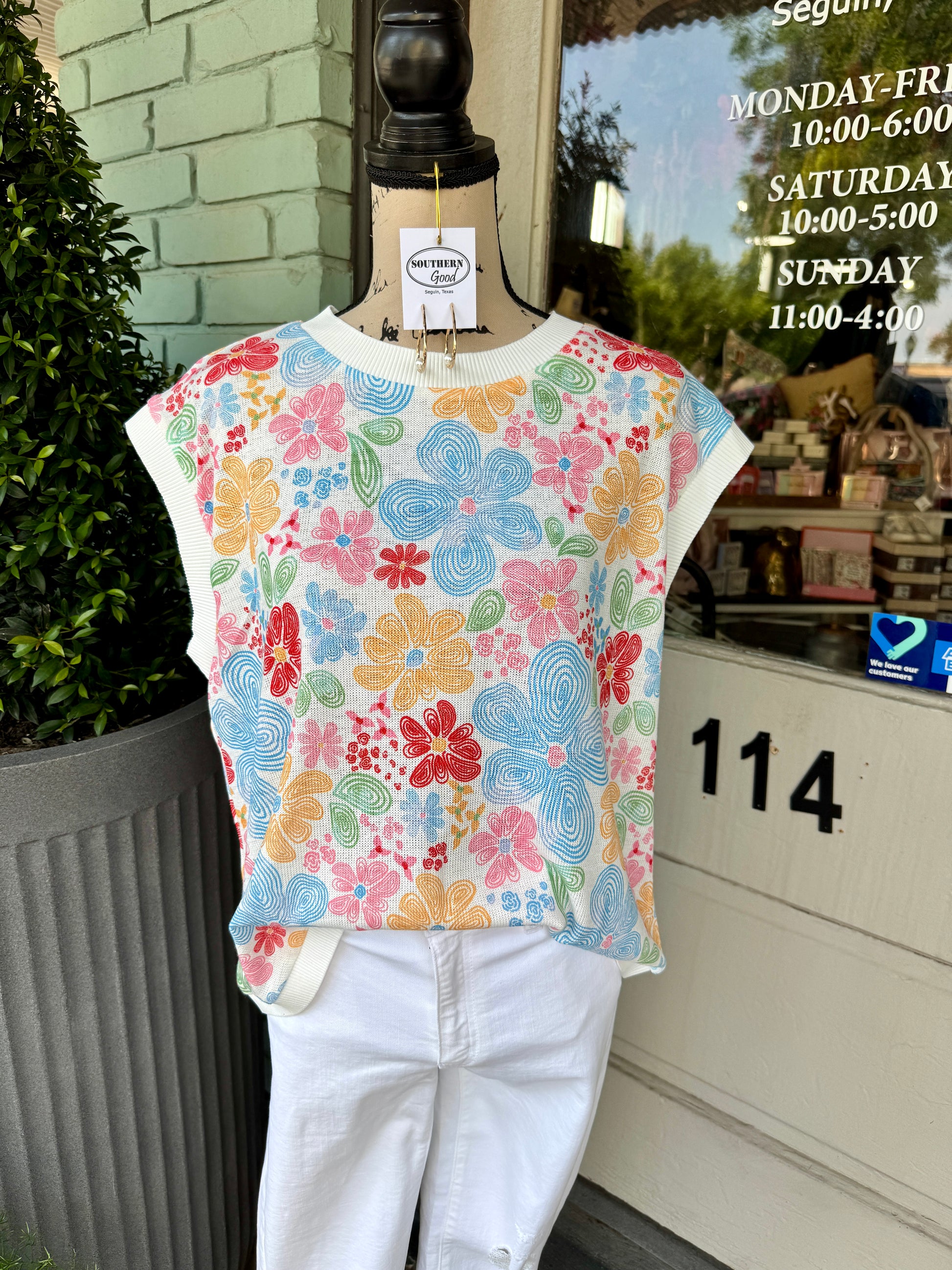 Stay cool and stylish this summer with the Kayla Top from Oddi. This lightweight, sleeveless sweater features a beautiful floral print that adds a touch of elegance to any outfit. Its breathable fabric ensures comfort on warm days, while the versatile design makes it perfect for both casual outings and dressier occasions. Elevate your summer wardrobe with the Kayla Top’s effortless charm and comfort.
