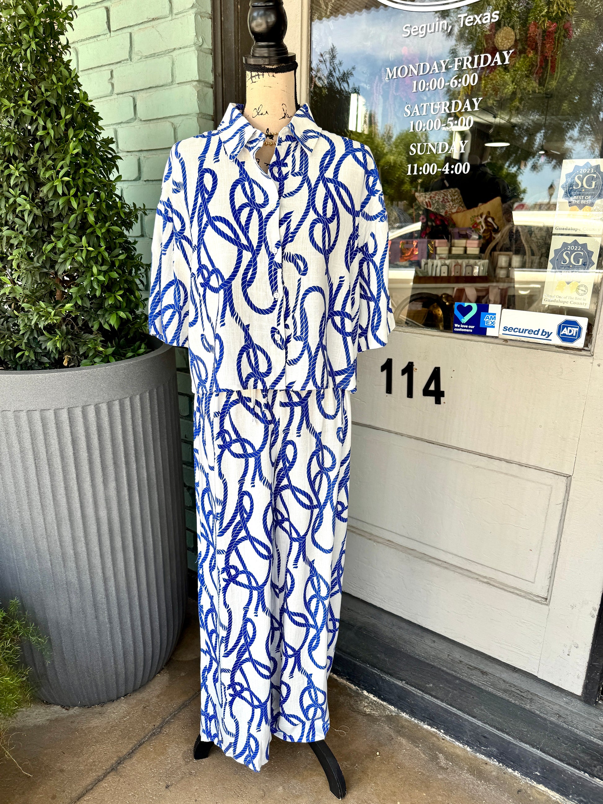 Experience effortless style and comfort with the Lia Pant by Gigio. Crafted from a breathable blend of 80% viscose and 20% linen, these wide-leg pants feature a chic rope print and an elastic waist for a perfect fit. Ideal for both casual outings and relaxed office days, they combine elegance with ease, making them a versatile addition to your wardrobe.