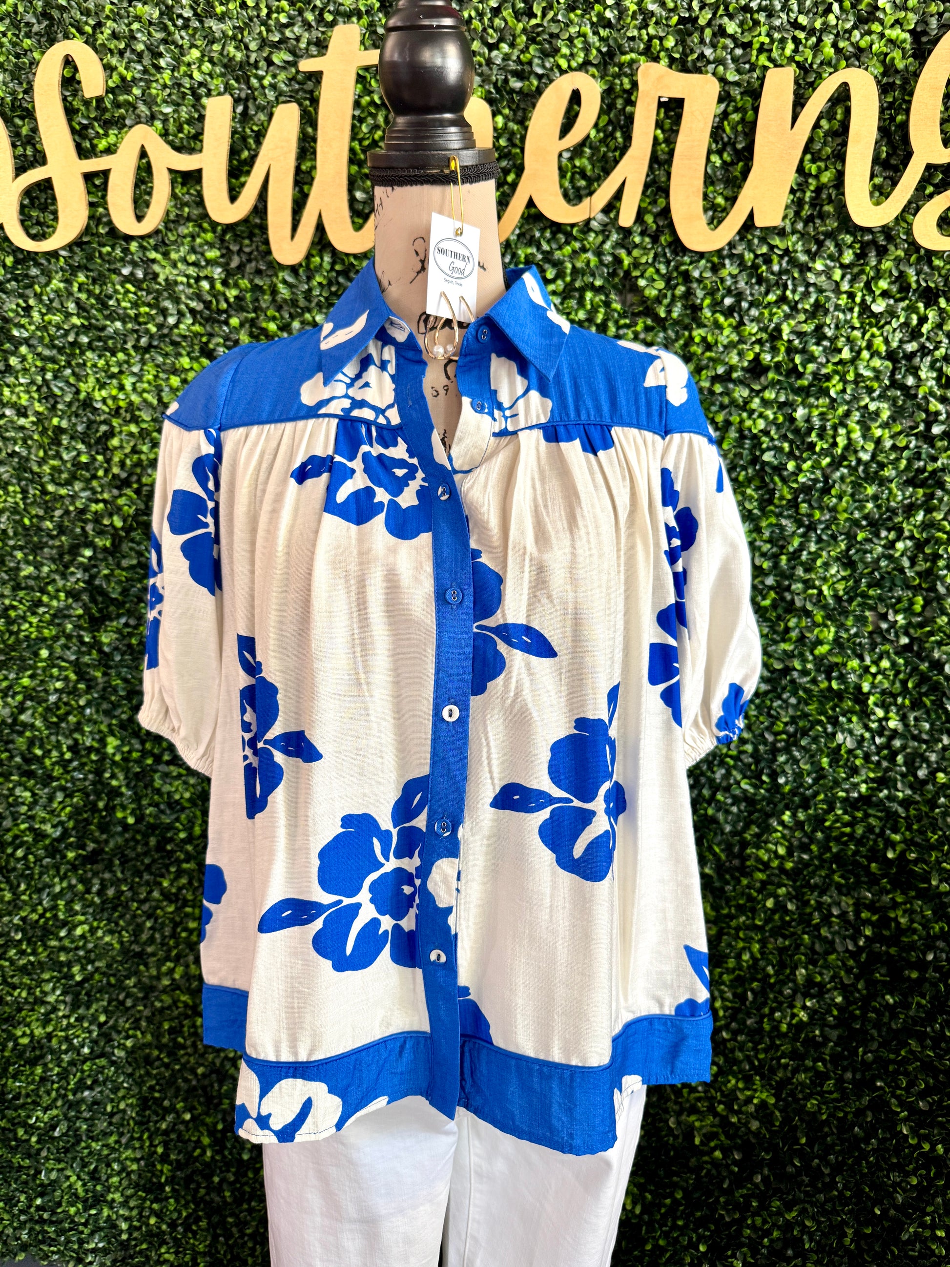 Elevate your wardrobe with the Monty Top, featuring a vibrant Hibiscus print color block design. This button-down shirt combines bold style with effortless comfort, making it perfect for both casual outings and stylish gatherings. Its unique pattern ensures you stand out, while the tailored fit offers a flattering silhouette. Add a touch of tropical flair to your everyday look with the Monty Top.