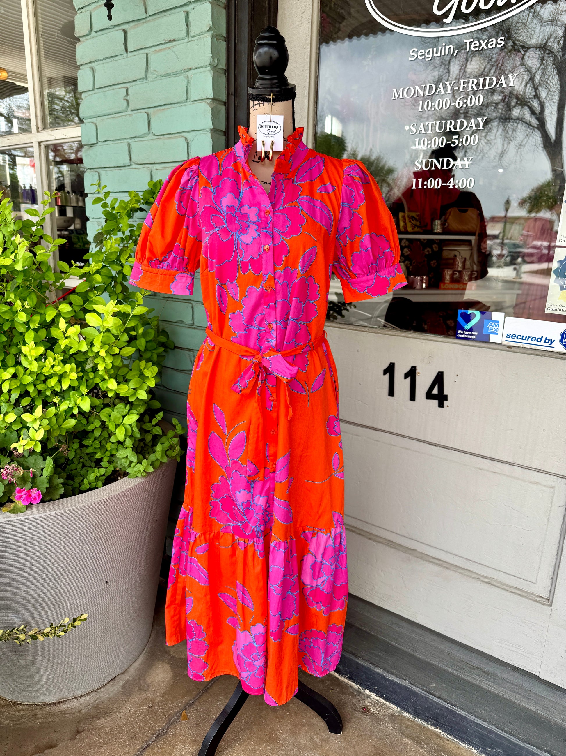 Elevate your style with the Nalani Midi from Sugerlips. This new arrival boasts a bold print, and features a convenient button up design, complete with lining and pockets. Experience fashion and functionality in one versatile piece.