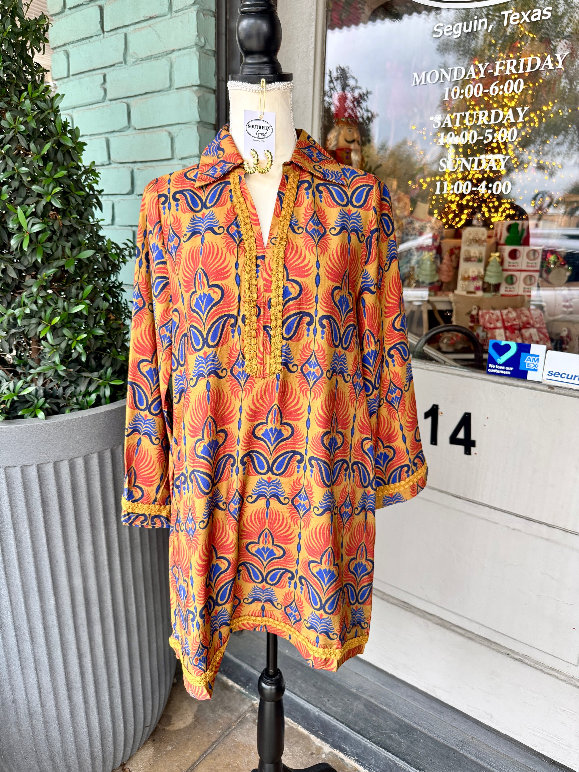 Effortless elegance meets everyday comfort in the Oakley Dress by Jodifl. This boho-inspired shift dress features a charming collared neckline with braided trim detailing that adds a touch of artisanal flair. Long sleeves provide versatile layering options for any season, while the relaxed shift silhouette flatters every figure. Practical pockets keep your essentials close without sacrificing style. Perfect for casual outings or dressed up for weekend adventures, this piece is a wardrobe essential that transitions seamlessly from day to night.