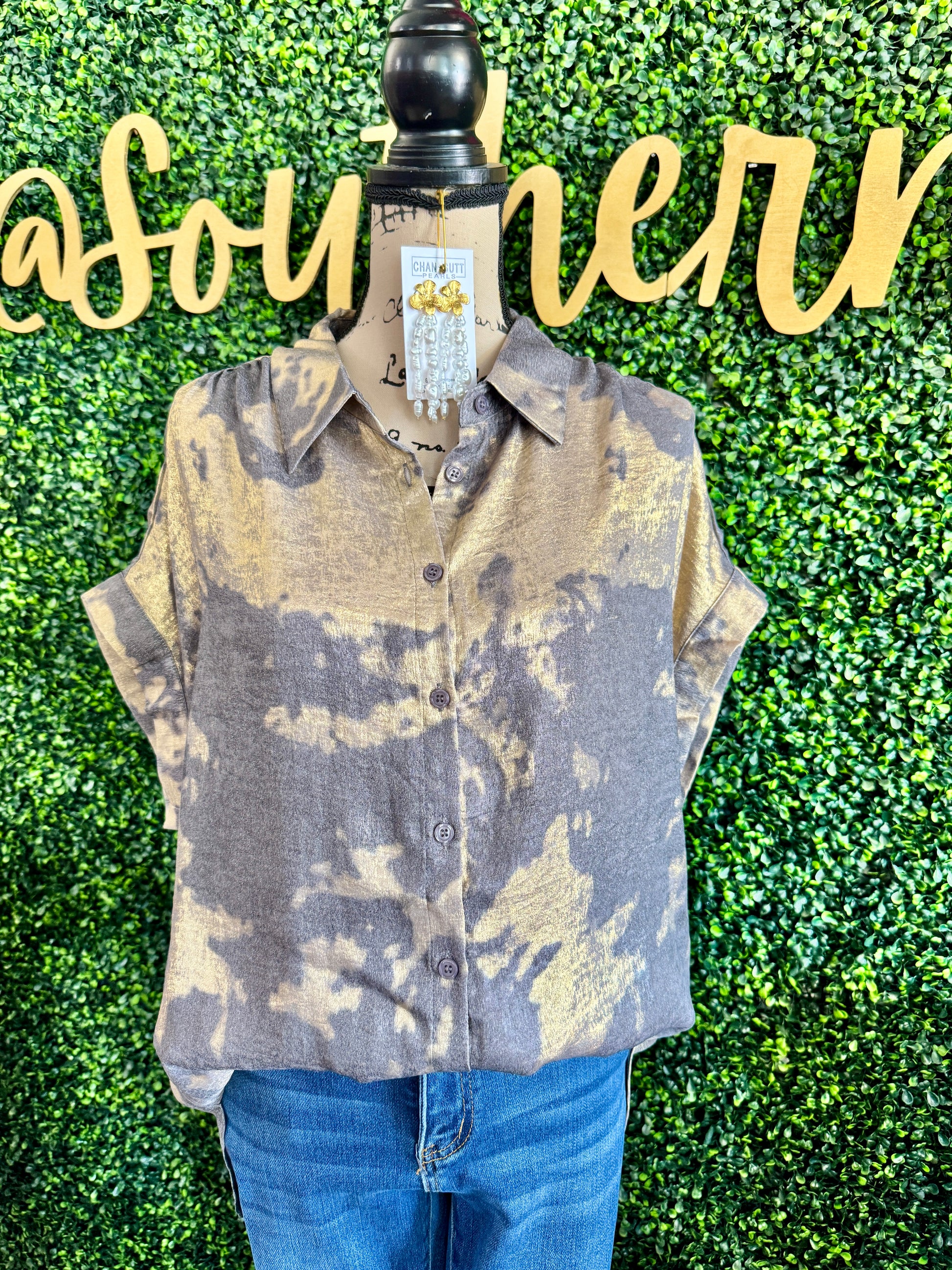 Discover the Rayne Top by Jodifl, a perfect blend of edgy and effortless style. This metallic tie-dye button-down features a relaxed drop shoulder design, offering a comfortable fit while making a bold statement. Ideal for elevating your everyday look with a touch of shimmer and modern flair.
