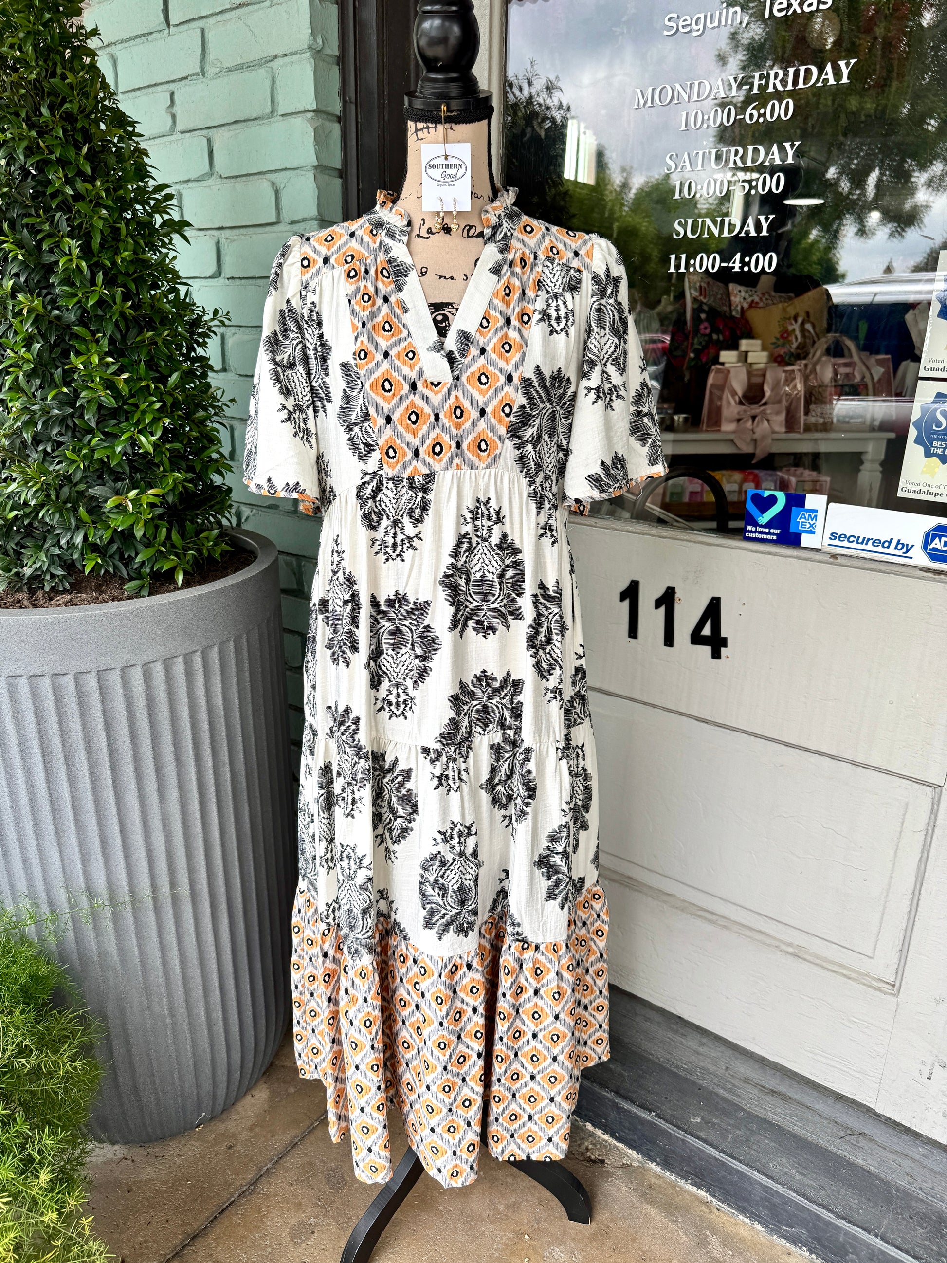 Elevate your wardrobe with the Reese Black Midi, a stunning tiered midi dress featuring a unique mixed media print by Gigio. Designed for both style and comfort, this dress includes convenient pockets and a flattering silhouette that moves gracefully with you. Perfect for day-to-night wear, it effortlessly combines artistic flair with practical elegance.
