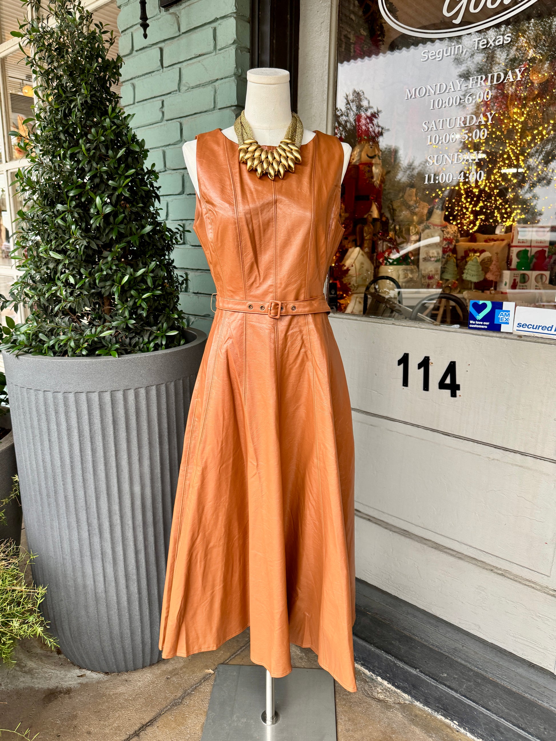 Introduce the Sierra Midi, a must-have from FreeMarket. This faux leather midi features a sleeveless design and a full skirt, enhancing your style and confidence. Effortlessly slip into this midi with the convenient back zipper and embrace its timeless elegance.