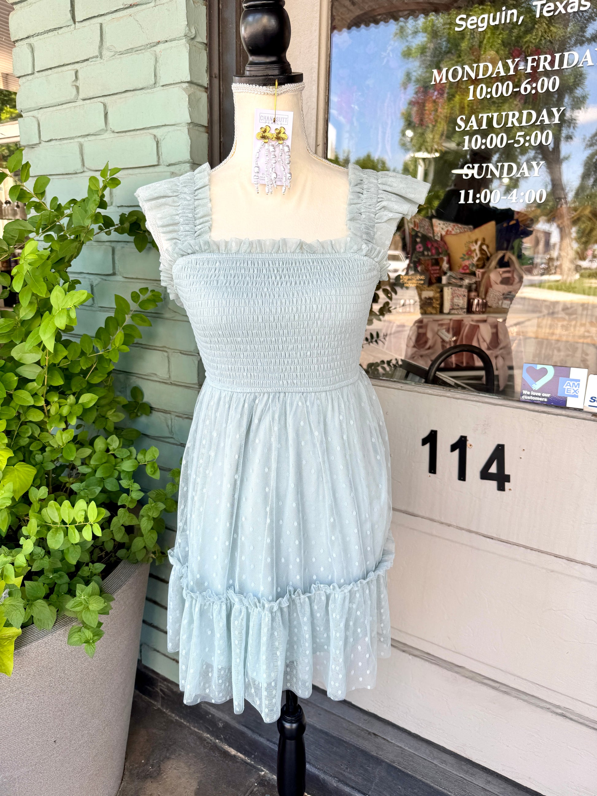 Elevate your wardrobe with the Stevie Sage Mini, a charming polka dot chiffon dress that combines playful elegance with effortless style. The smocked bodice provides a flattering fit while delicate ruffles and mini length create a feminine silhouette that transitions seamlessly from day to evening. Perfect for those who want to make a statement without saying a word.