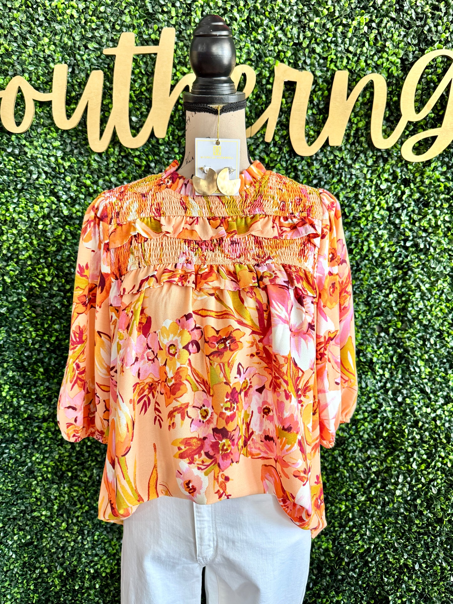 Introduce a touch of luxury to your wardrobe with our Peach floral print Taylor Top from Oddi! Perfect for any season, this top features a stunning floral print and 3/4 sleeves for a flattering and versatile look. Elevate your style and make a statement wherever you go!