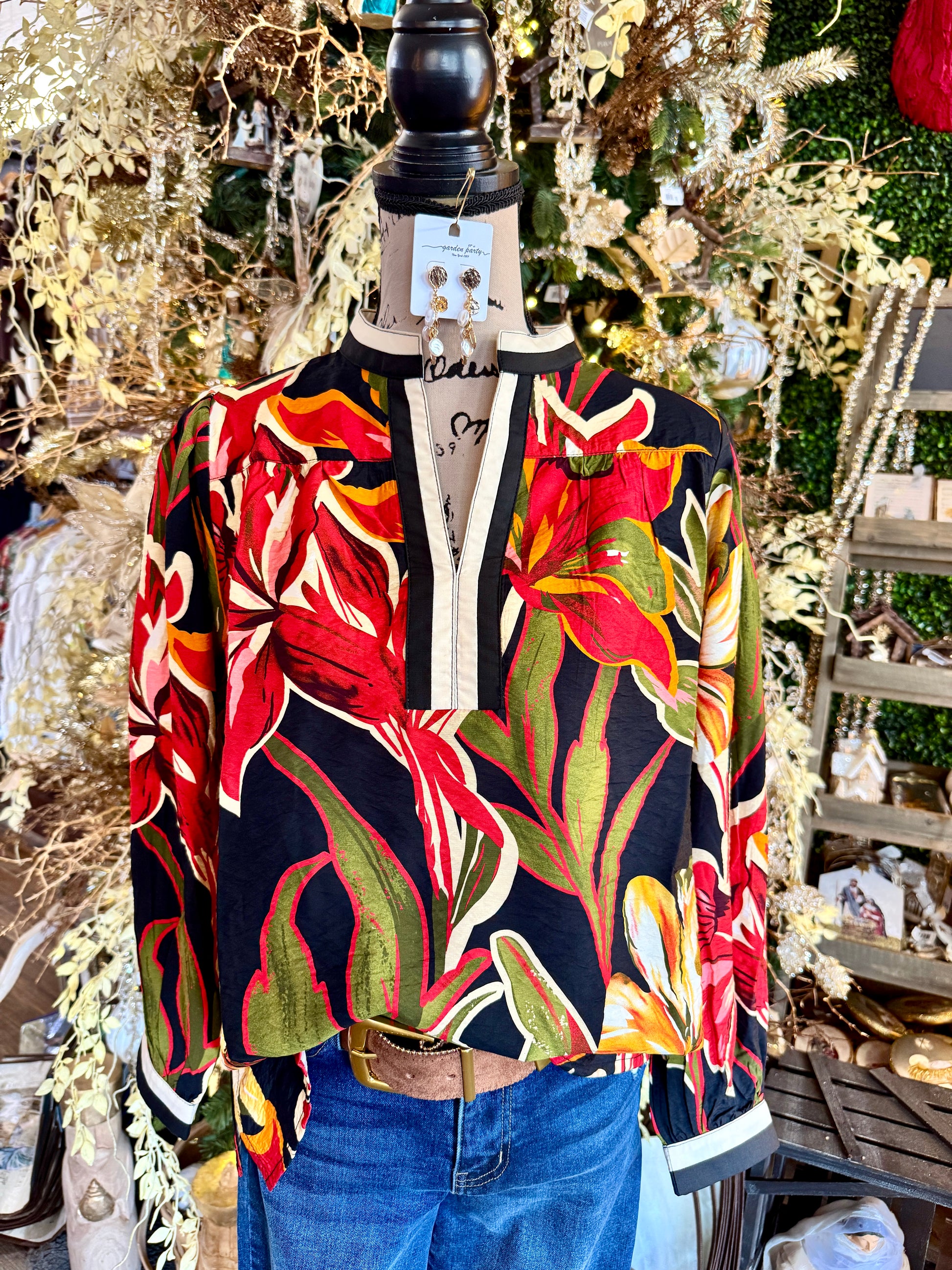 Introducing the Winnie Top from Jodifl—a charming long sleeve floral design that brings effortless elegance to your everyday wardrobe. The delicate floral pattern is beautifully balanced with solid contrast detailing, creating visual interest and versatility. The distinctive standing neckline adds a polished, modern touch that elevates any outfit. Perfect for layering or wearing solo, this piece transitions seamlessly from season to season. Discover why the Winnie Top is the go-to choice for those who appreciate quality craftsmanship and timeless style.
